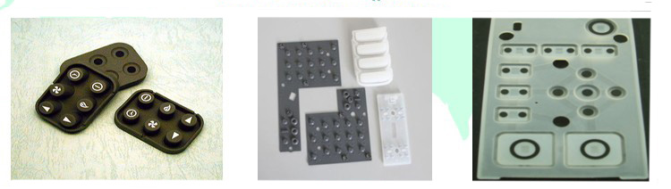 導電黑粒最常被使用於按鍵製造選擇, 傳導性佳, 一般導電粒採模注式於按鍵底, 使用壽命長, 可達5百萬次以上, 導電係數一般少於200 ohms. 常見於圓形規格與一般厚度 0.4-0.6mm (0.010"-0.015")或一按鍵規格而異, 複合式導電黑粒具穩定性與驅動性佳且價格合理.