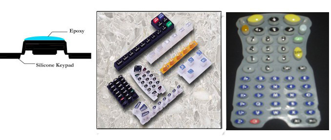 矽橡膠按鍵表面可加以一層樹脂塗覆製成不同硬度具塑膠質感之按鍵, 並提供網印字體或圖案多一層防護. 增加使用壽命.